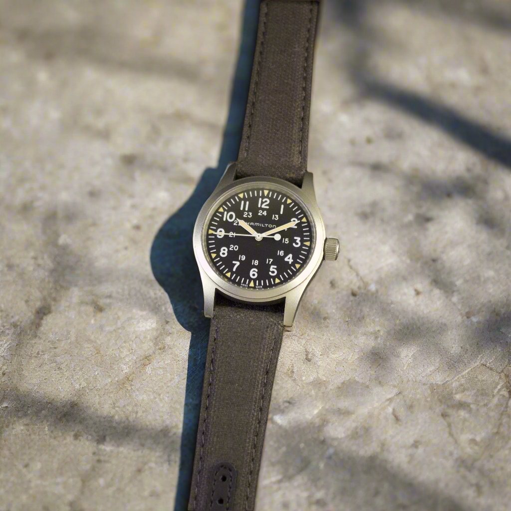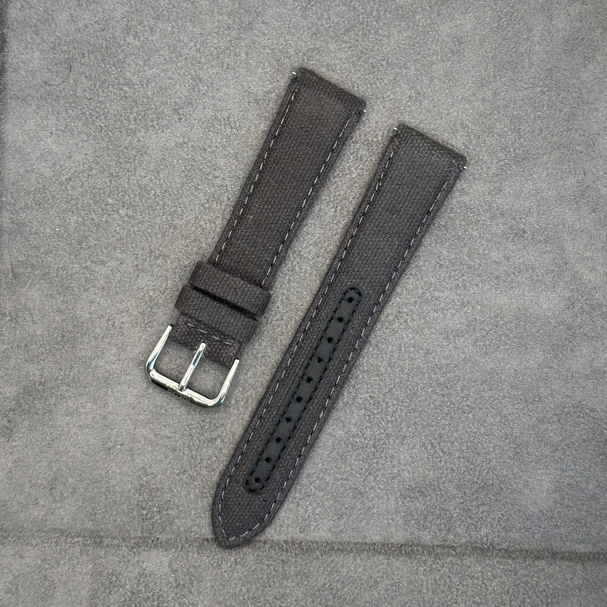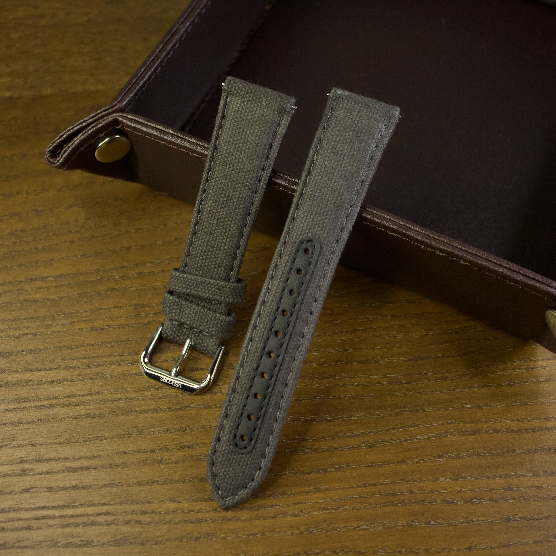Upgrade your watch game with our Grey Fabric strap featuring a durable yet stylish leather surround for pin holes. Ideal for any adventure or those hot summer days, you'll love the versatility and comfort of this strap. Expertly crafted for the ultimate accessory upgrade.